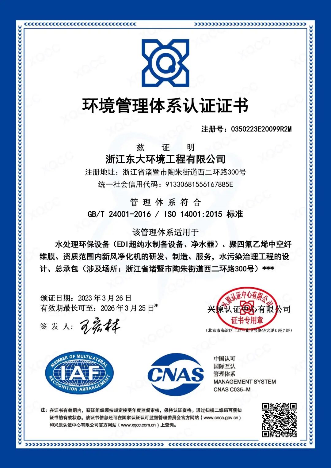 近日,东大环境对原有的“质量管理体系”、“环境管理体系”、“职业健康安全管理体系”三大体系重新通过认证。